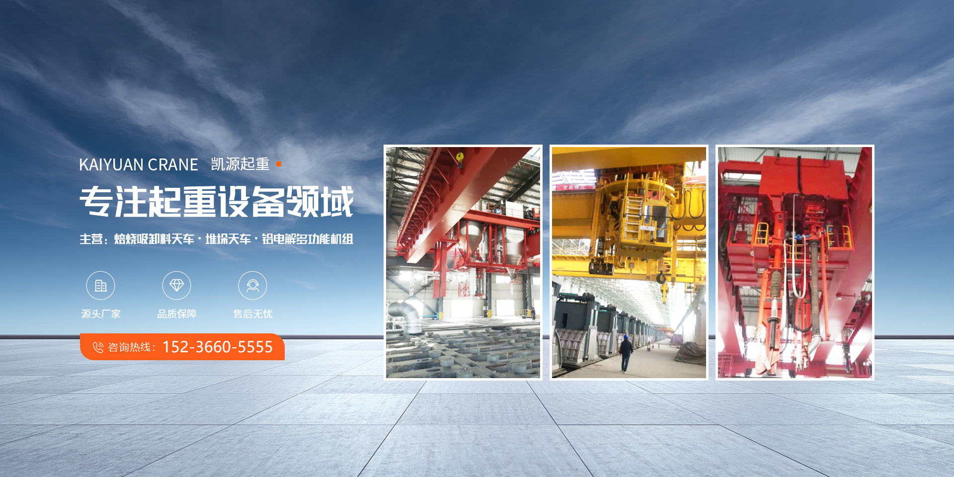 河南省凱源起重機械有限公司,地處河南省起重機械工業(yè)園長惱工業(yè)區(qū)。專業(yè)生產(chǎn)夾鉗天車,鋁電解多功能機組,碳素堆垛天車,焙燒吸卸料天車,焙燒多功能天車等起重機設(shè)備。